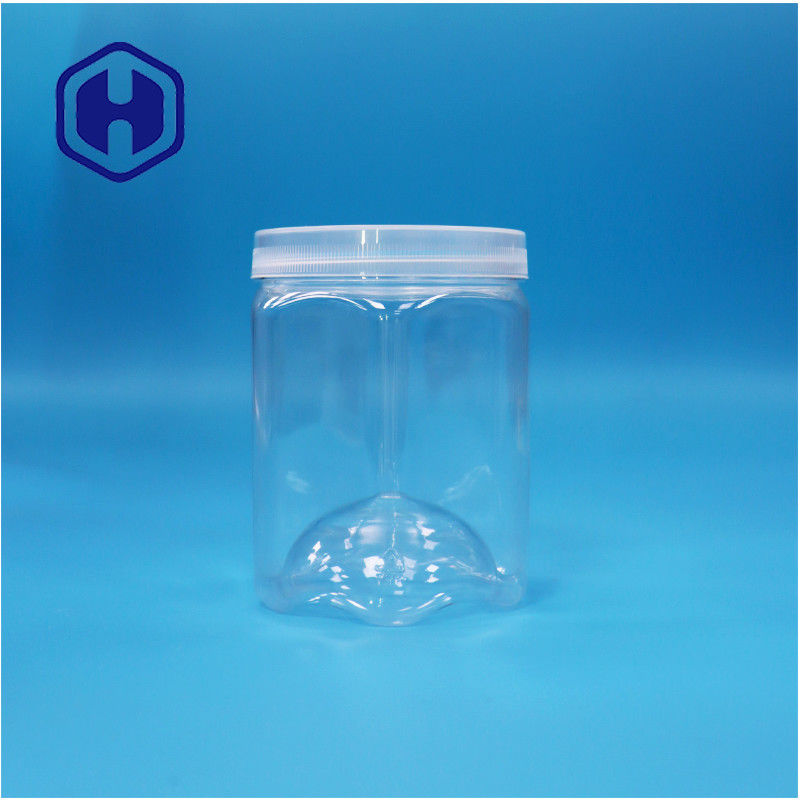 Açık Kare PET Plastik Gıda Sınıfı Şeker Şekerli Kurabiye Kavanozu vida kapağı ile