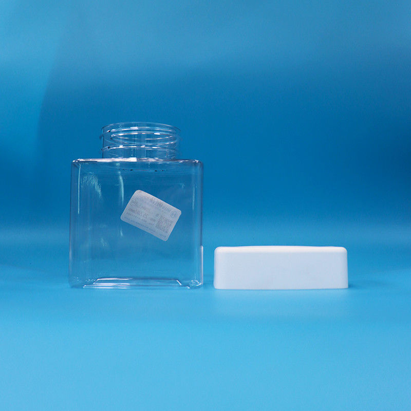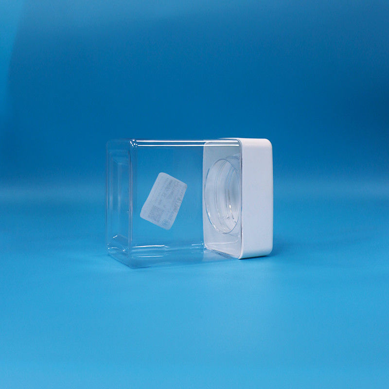 Şeffaflık PET Şekerleme Atıştırmalık Plastik Gıda Sınıfı Kare Kavanozlar Düğüm Kapakları