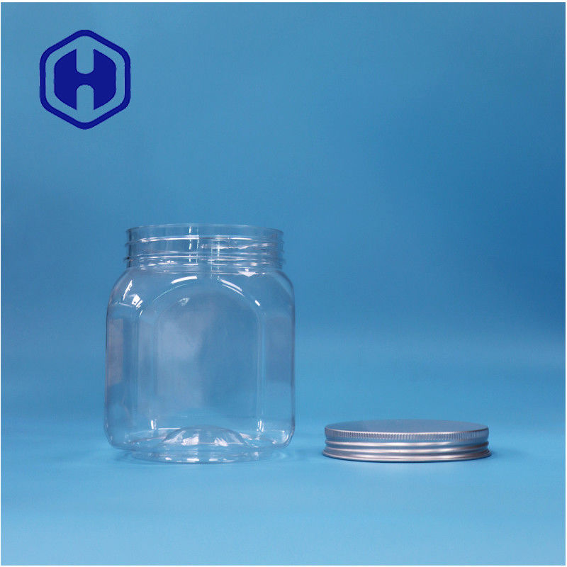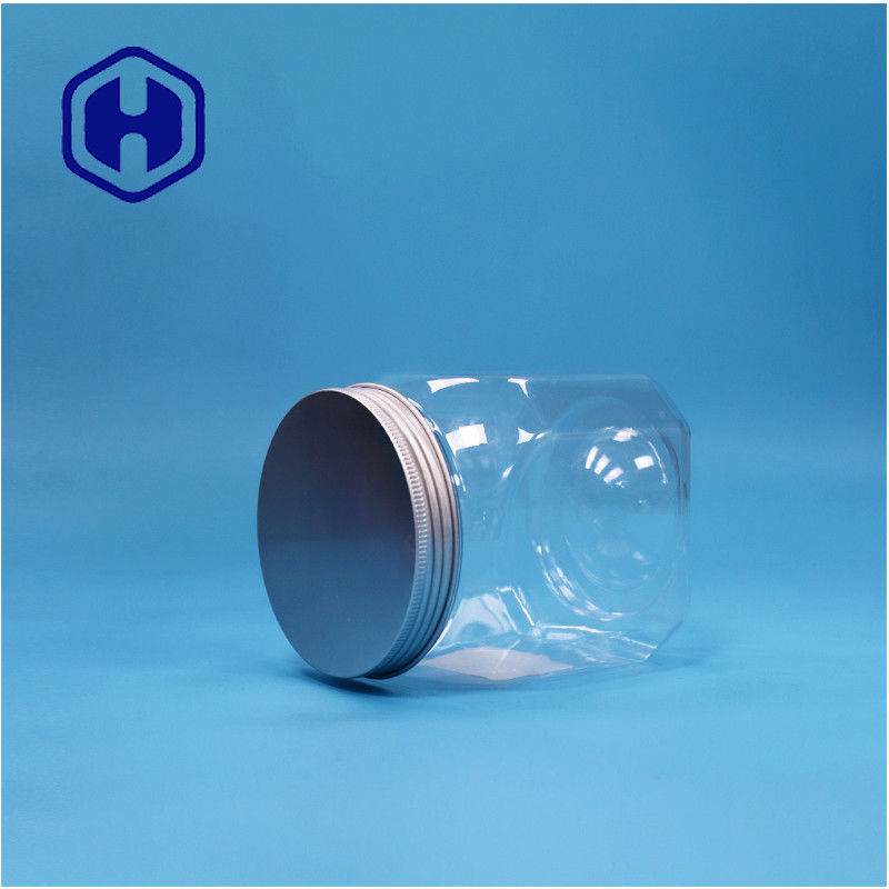 Polygonal şekilli açık plastik kurabiyeler Rock Candy Fındıklar Şeker Kavanoz Alüminyum üst kapağı