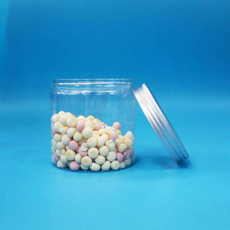 Yuvarlak Geniş Ağız Silindir şekli Açık PET Plastik kurabiye kavanoz Alüminyum vida Kapak