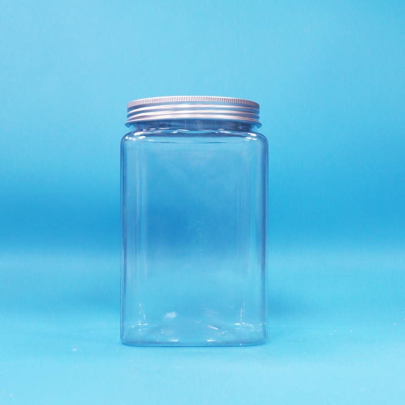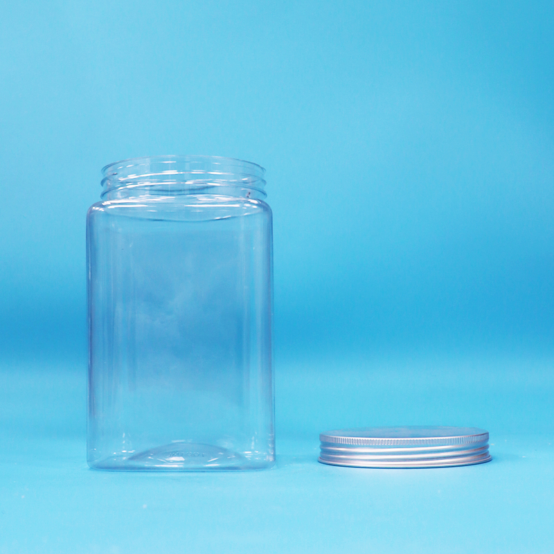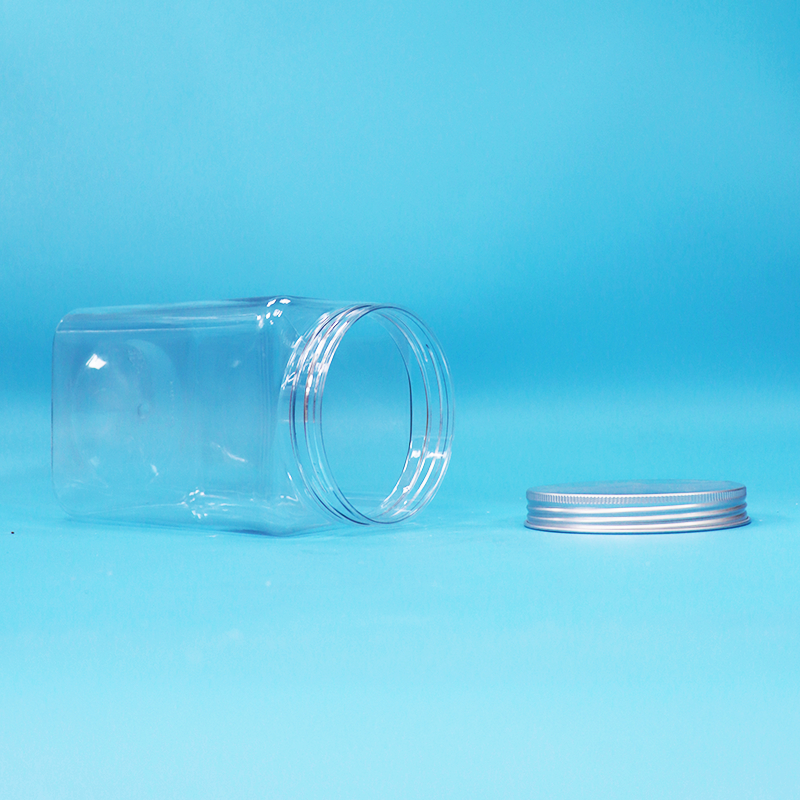 Bpa İçermeyen Kare Şeffaf PET Plastik Erişte Şeker Kavanozu ve Vidalı Alüminyum Kapak