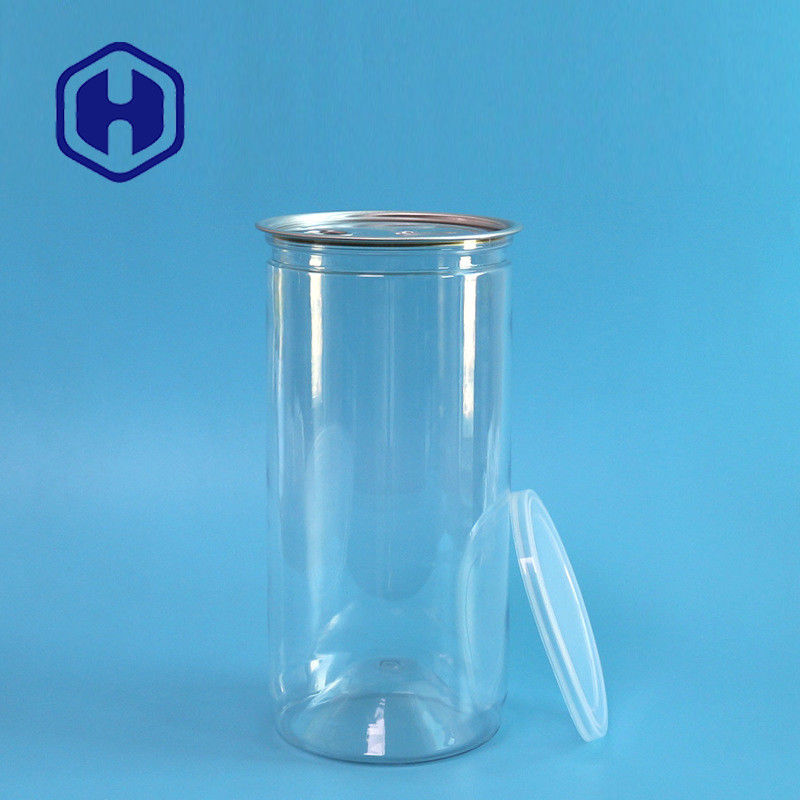 1450ml 49oz alüminyum kolay açılır kapaklı ve plastik kapaklı büyük yuvarlak boş PET kutu