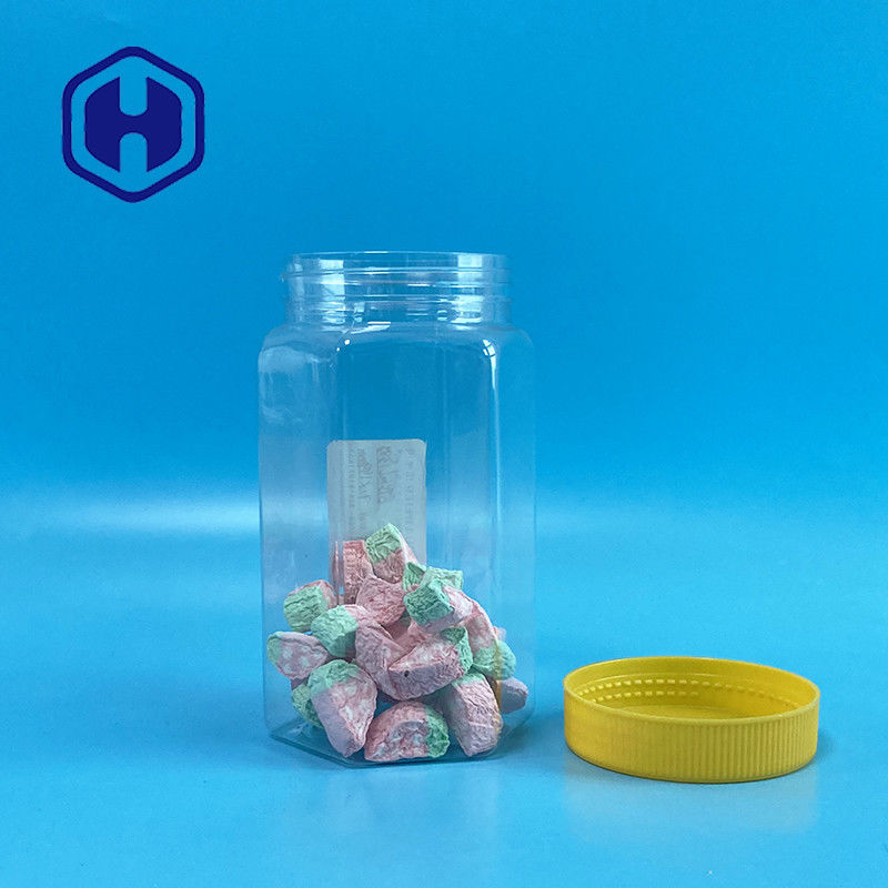 Toplu 670ml Şeffaf Altıgen Geniş Ağızlı PET Plastik Gıda Ambalaj Kapaklı Kavanoz
