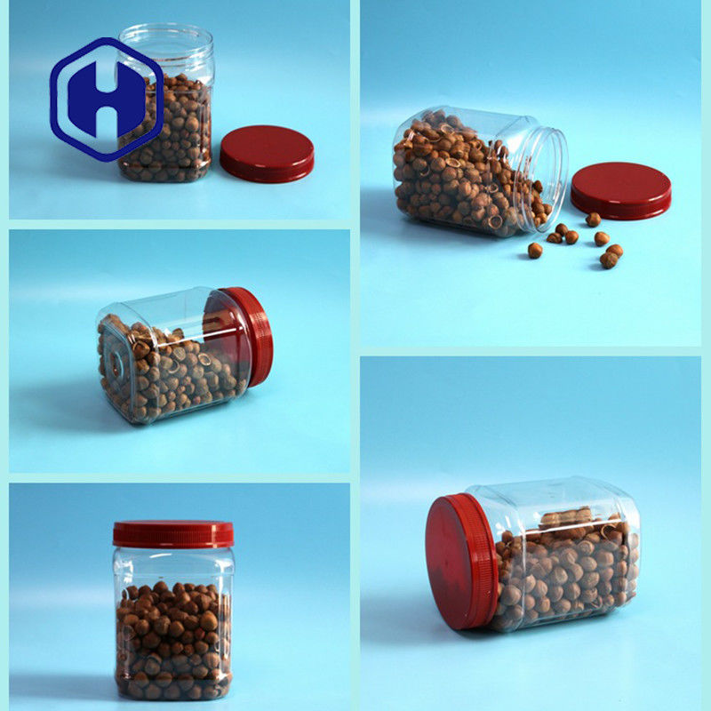 Fındık Kahve Tozu Vidalı Kapak 1480ml 50oz Gıda Ambalajı İçin Kare PET Plastik Kavanoz