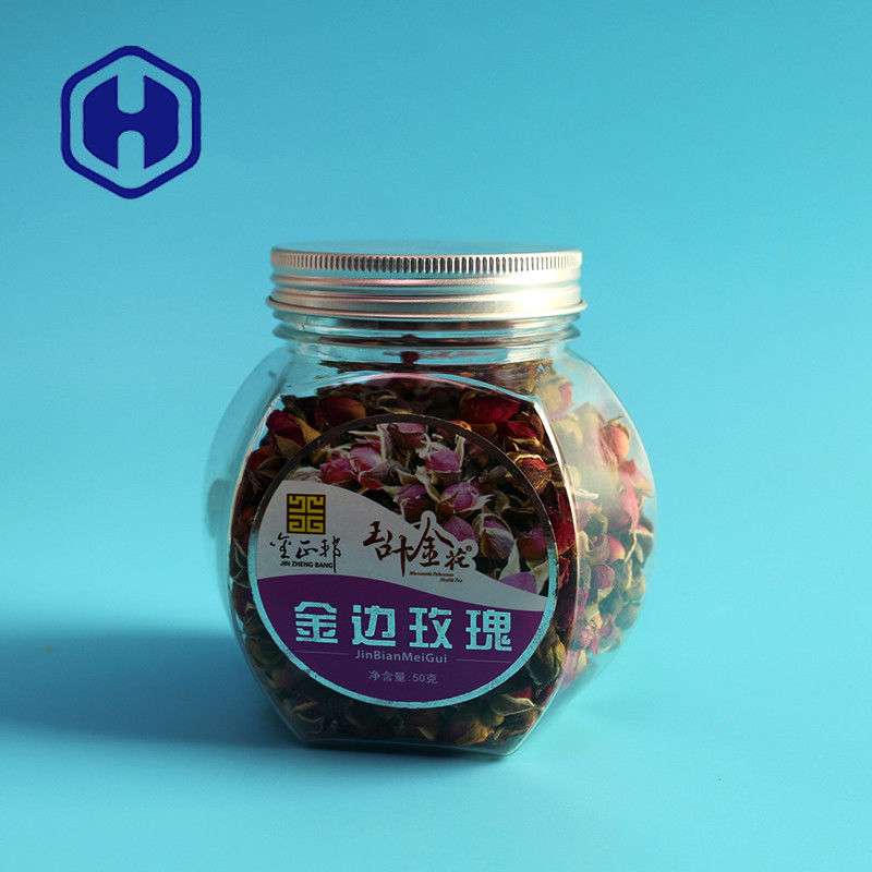 Özel Kokulu Kuru Çiçekler Kuruyemiş Gıda Ambalajı Alüminyum Kapaklı PET Plastik Kavanozlar
