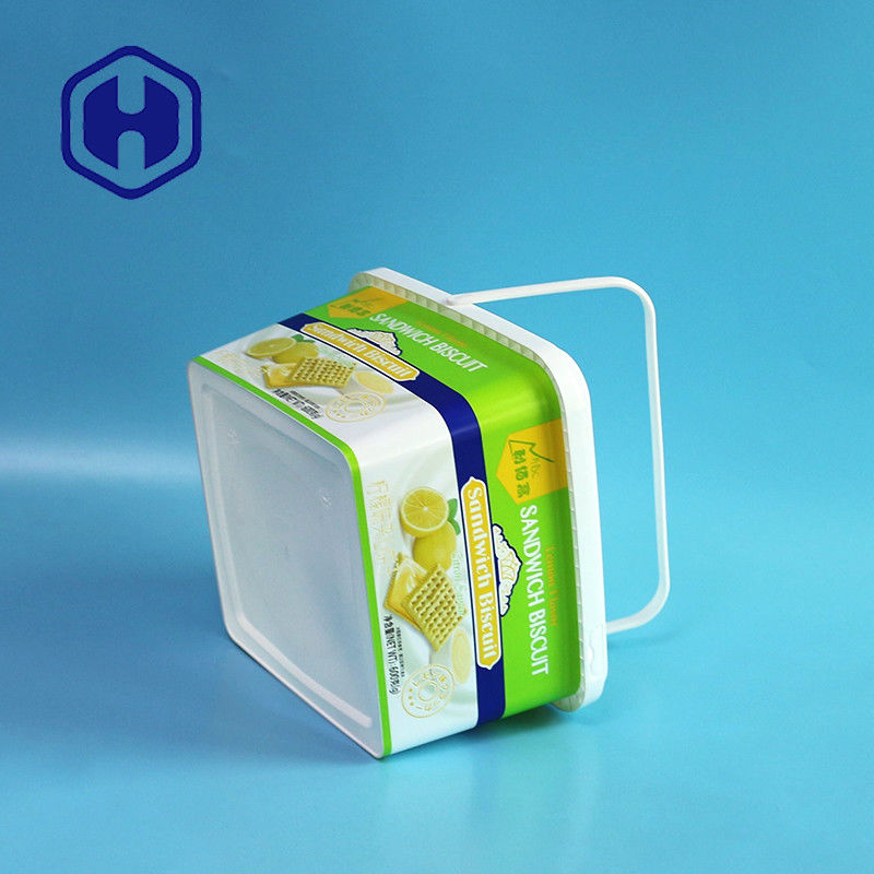Çevre dostu Tek kullanımlık özel dayanıklı kare 2L plastik kraker bisküvi IML konteyner ambalaj kutusu