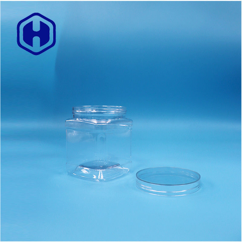 Açık Kare PET Plastik Gıda Sınıfı Şeker Şekerli Kurabiye Kavanozu vida kapağı ile