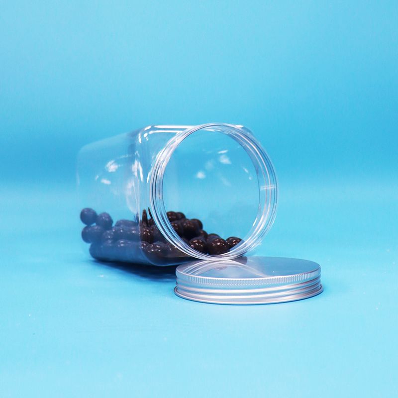 Vuruş Alüminyum Kapak Kare şekli Şeffaf PET Plastik Noodles Şekerli Kavanoz Bpa Serbest