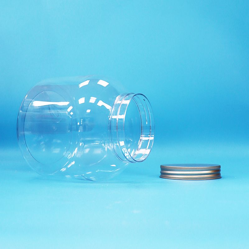 Çevre Dostu Şeffaf Plastik PET Yuvarlak Şekerleme Günlük Gıda Kavanozları Alüminyum Vidalı Kapaklar